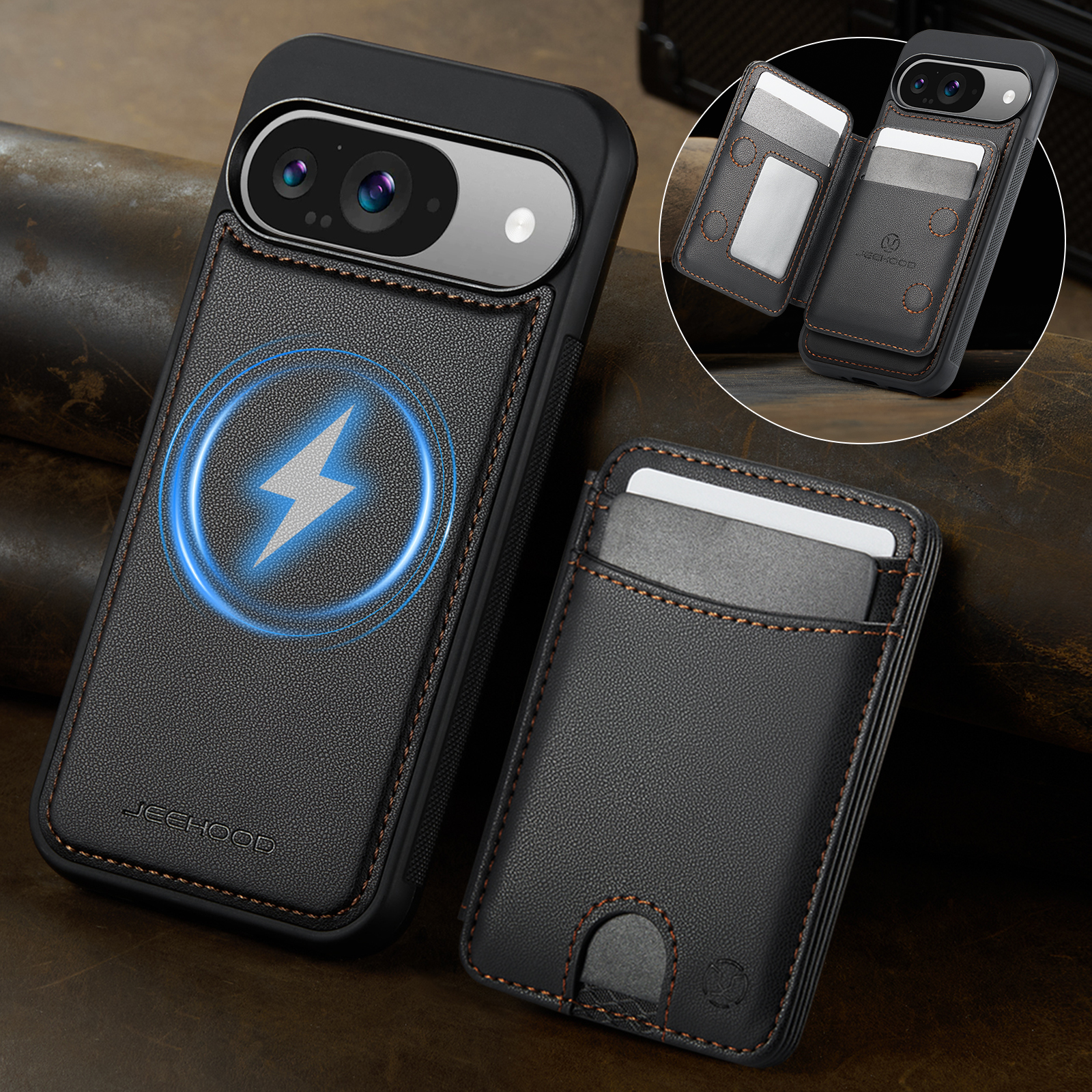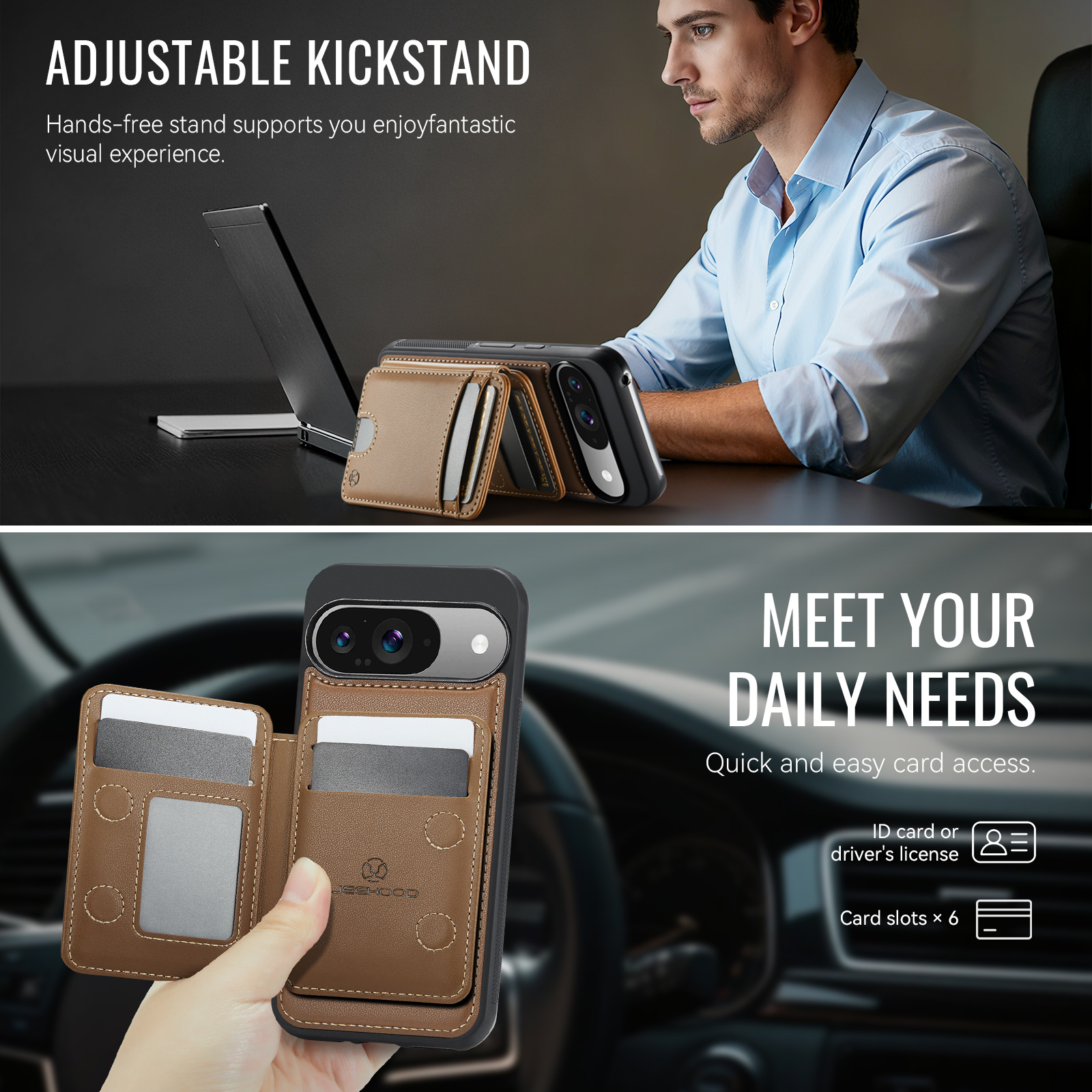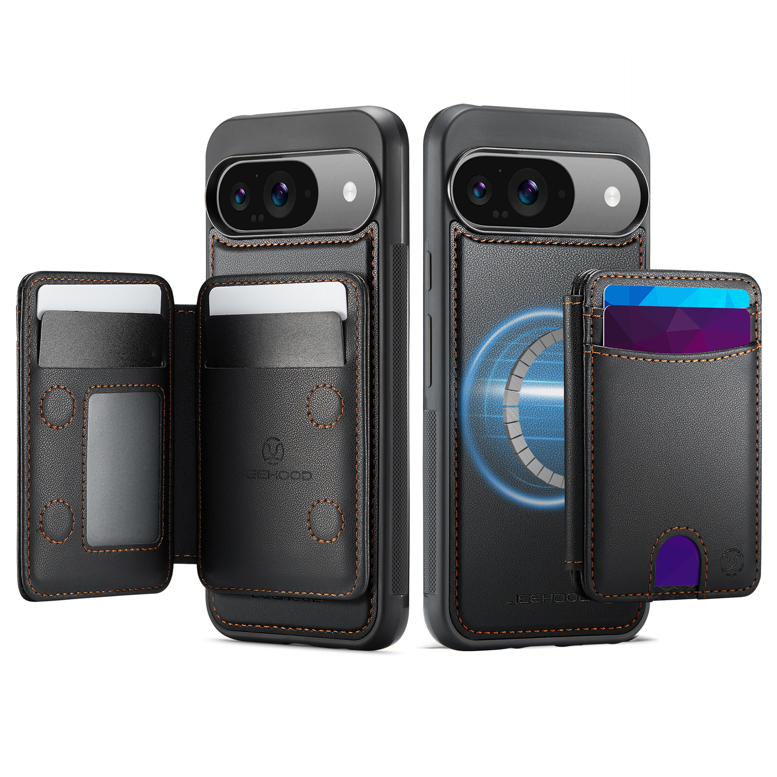 Держатель карт с несколькими отделениями для карт с возможностью открывания слева и справа, благодаря встроенному магниту держится всегда надежно. Держатель для карт оснащён слотом для карт, открывающимся нажатием, слотом для фоторамки и пятью отделениями для карт на передней панели. Слоты для карт оснащены функцией RFID (защита от кражи). Быстрый и удобный доступ к картам.