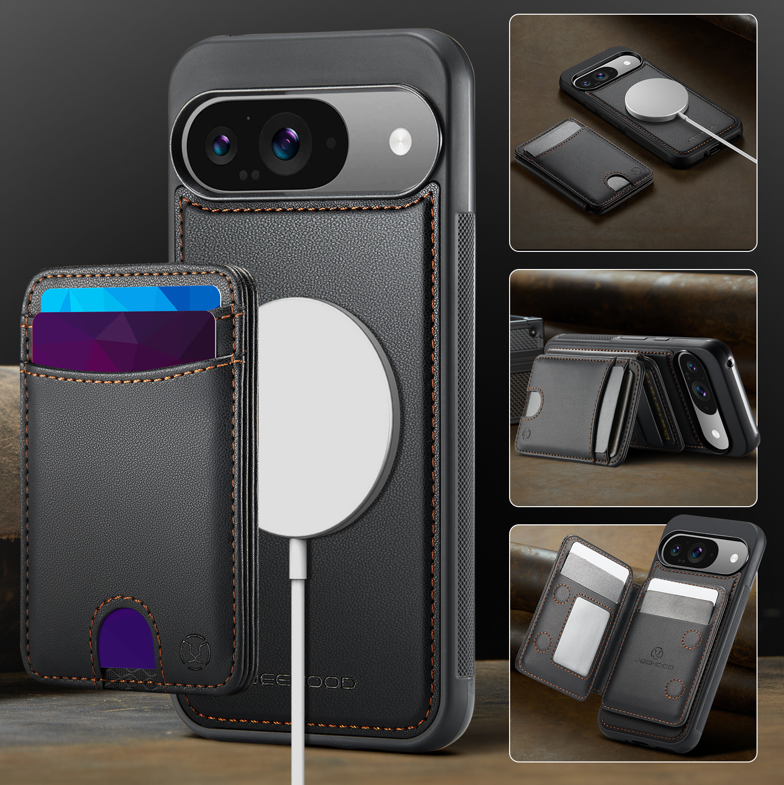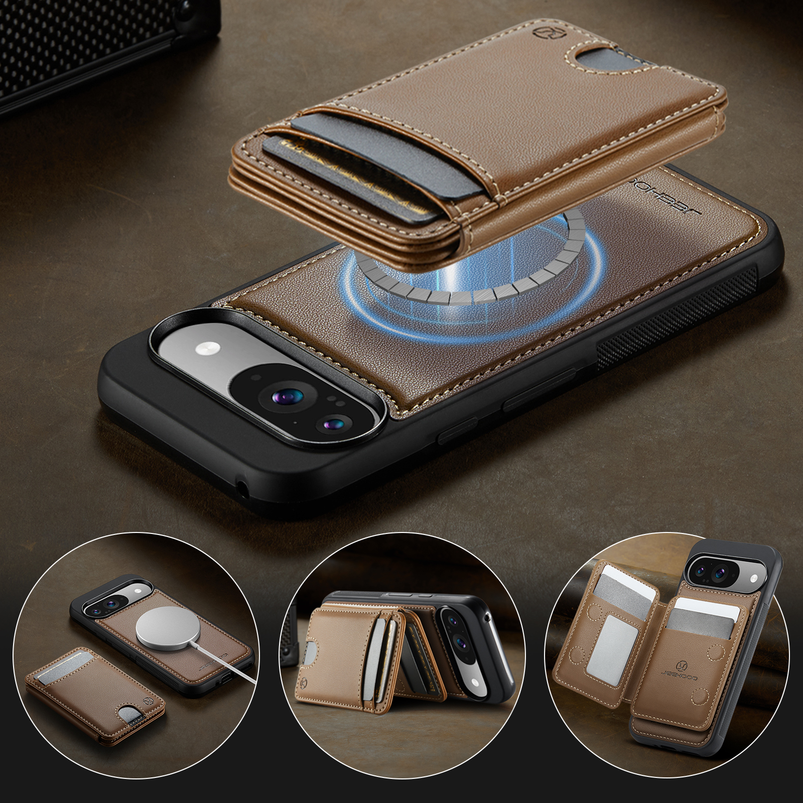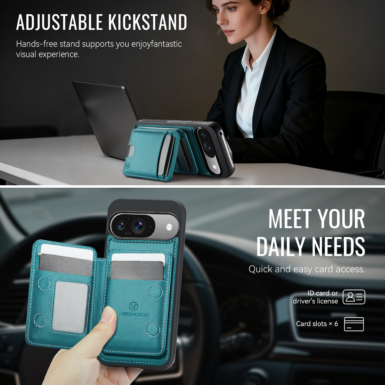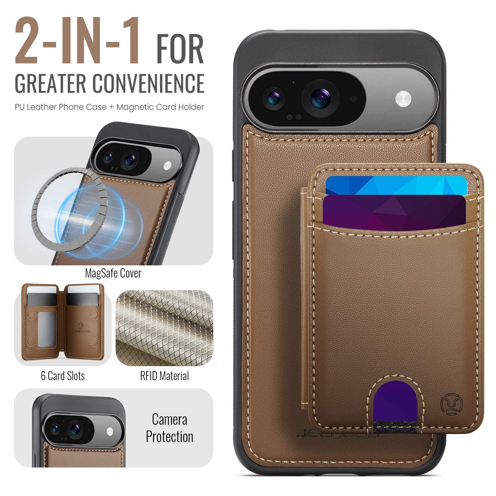 Держатель карт с несколькими отделениями для карт с возможностью открывания слева и справа, благодаря встроенному магниту держится всегда надежно. Держатель для карт оснащён слотом для карт, открывающимся нажатием, слотом для фоторамки и пятью отделениями для карт на передней панели. Слоты для карт оснащены функцией RFID (защита от кражи). Быстрый и удобный доступ к картам.