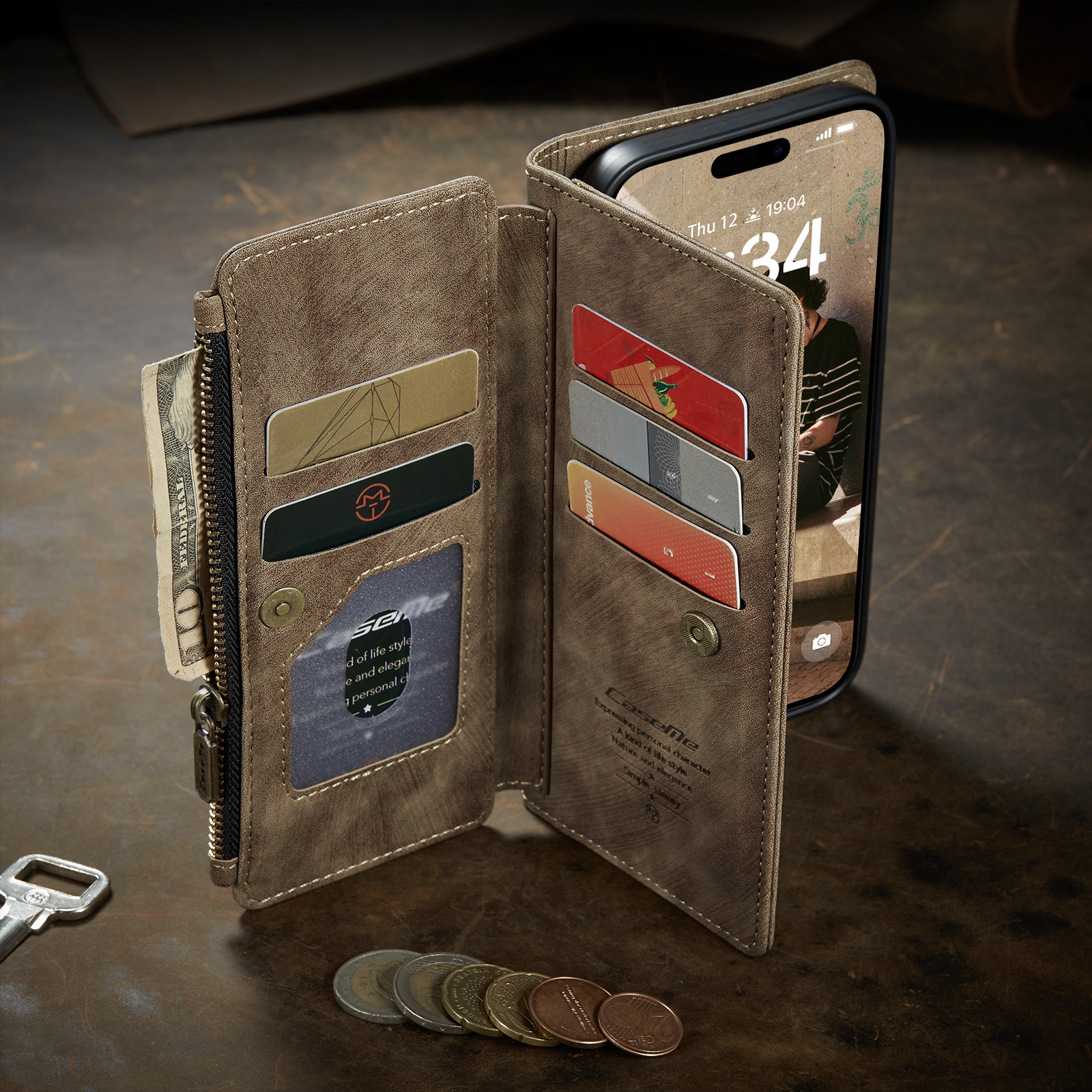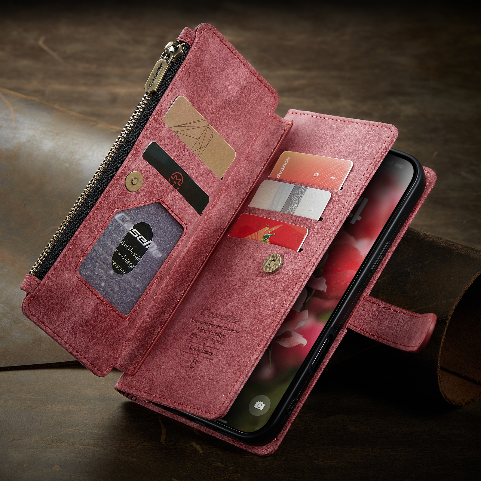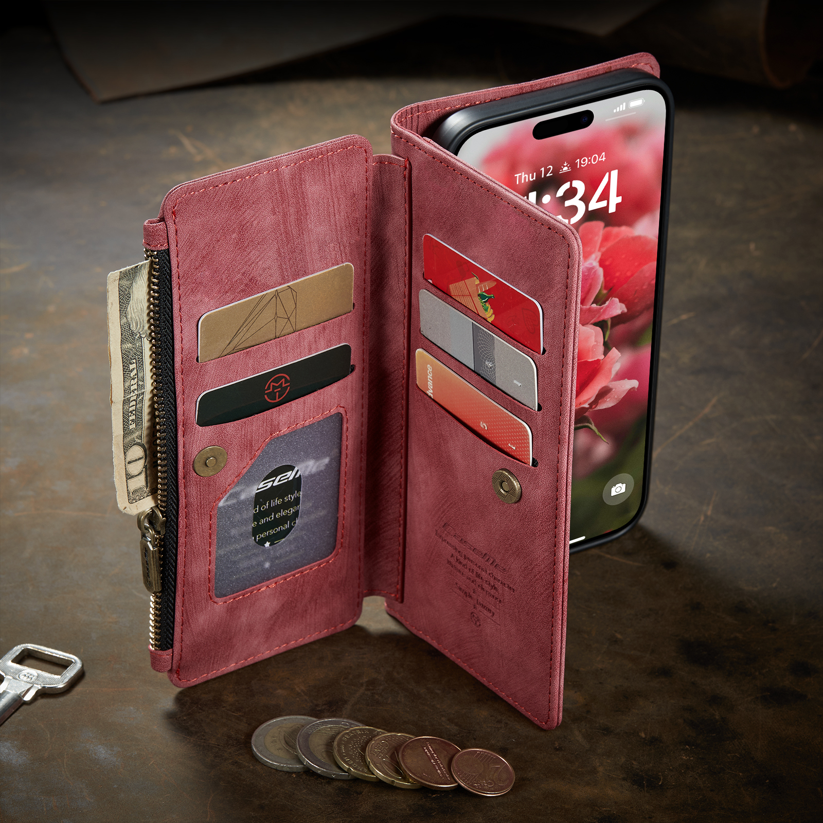 7 слотов для карт,1 отделение для бумажника, 1 карман на молнии