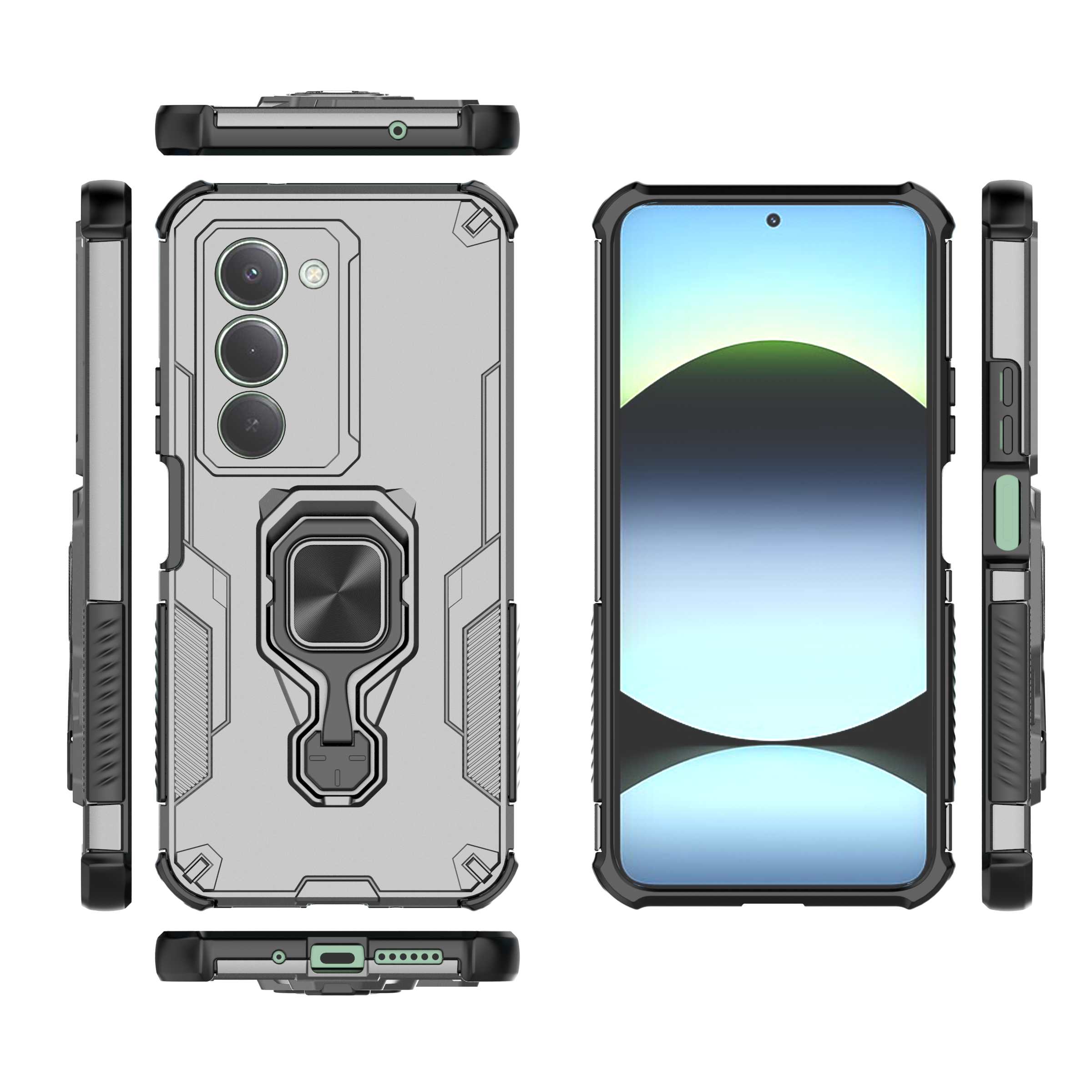 1. Формат: чехол-накладка. 2. Материалы: термополиуретан, поликарбонат; 3. Есть все функциональные вырезы; 4. Удобное кольцо-держатель; 5. Полная защита от механических повреждений; 6. Чехол не скользит в руках.