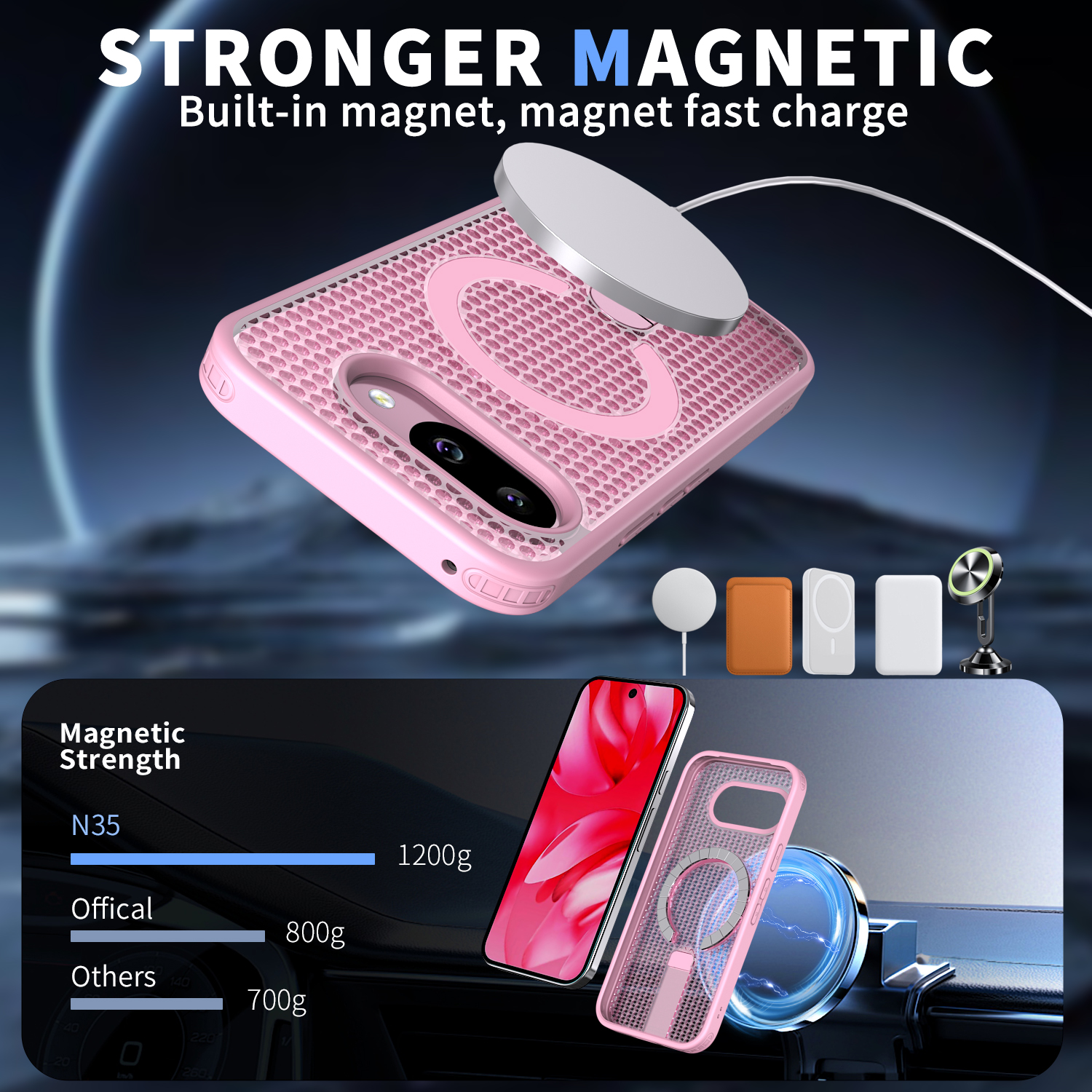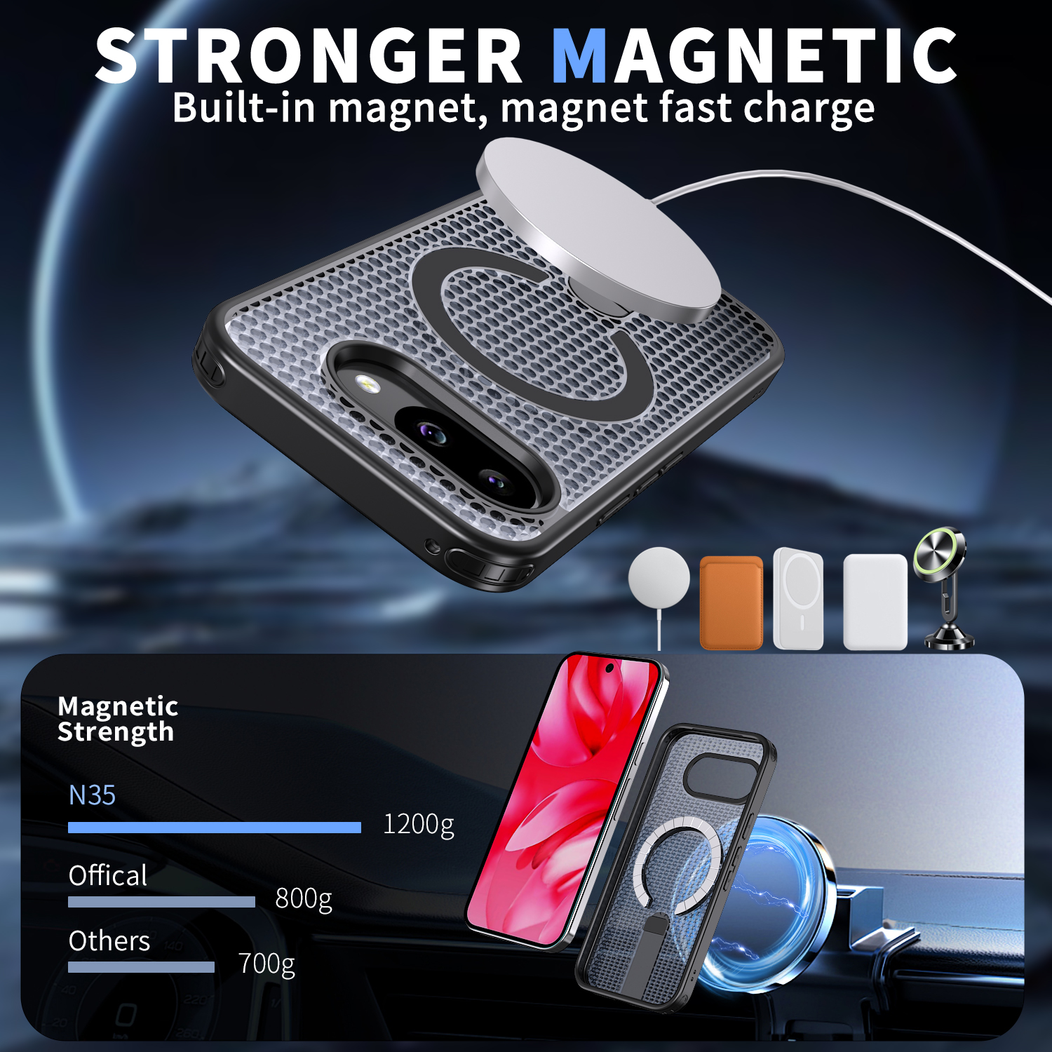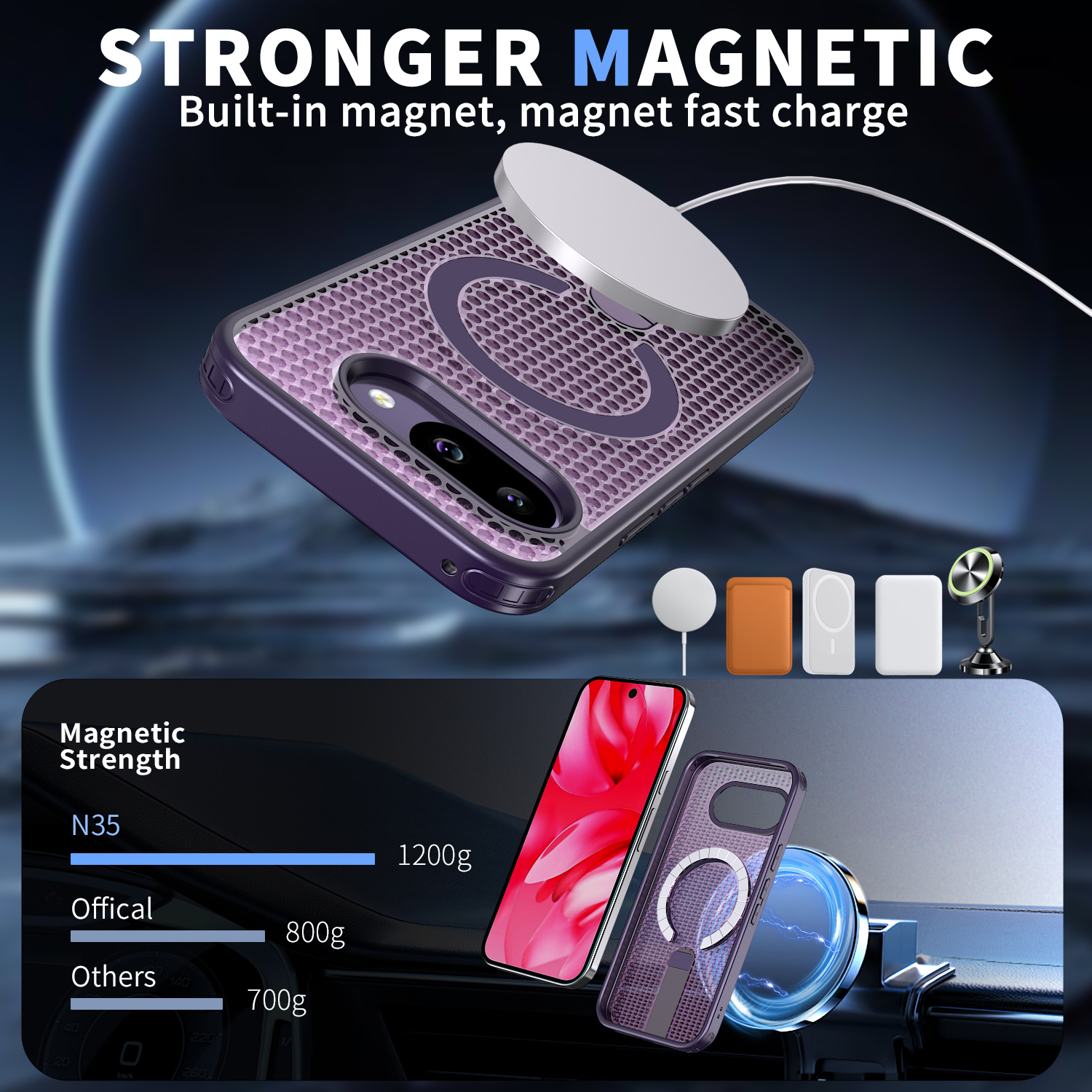 Совместимость с MagSafe. Кольцо для магнитного держателя- магнит N35 (магнитная сила: 1700-1800).