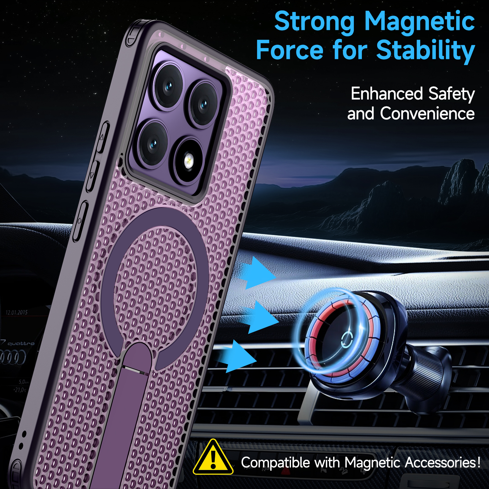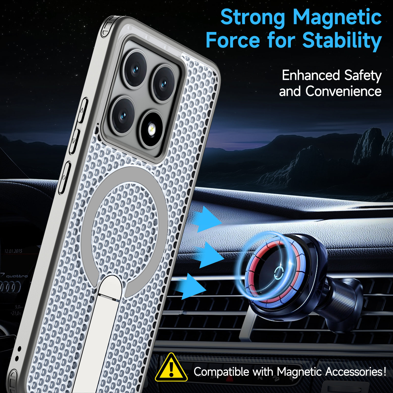 Совместимость с MagSafe. Кольцо для магнитного держателя- магнит N35 (магнитная сила: 1700-1800).