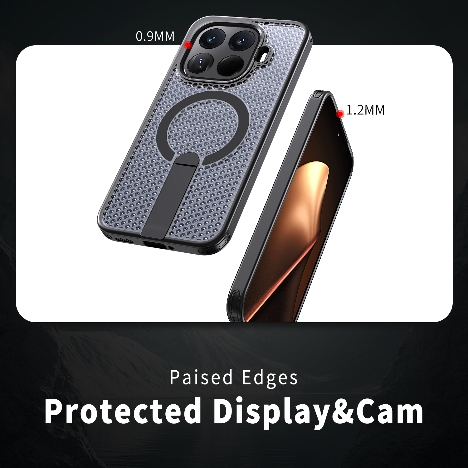 Материал: ТПУ толщина: 2,0 мм + ПК толщина: 3,0 мм + кронштейн из цинкового сплава + магнит.